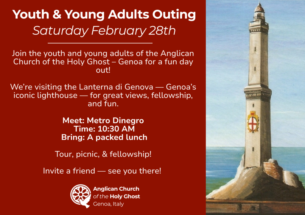 The Anglican Church of the Holy Ghost – Genoa is excited to invite all our young people to a special outing this Saturday!