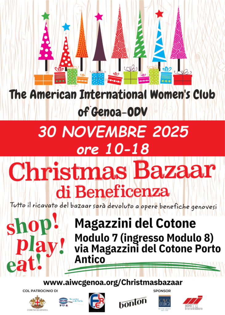 The American International Women’s Club of Genoa’s annual Christmas Bazaar. The American Women’s Club is a longtime supporter of the Anglican Church of Genova. For more information click below.